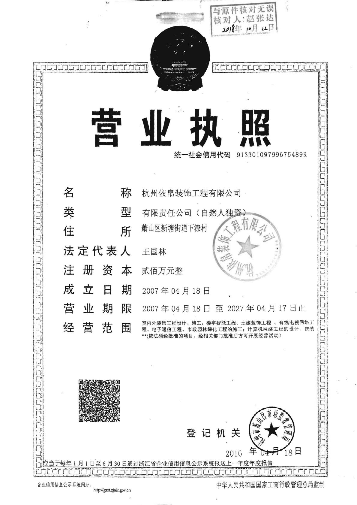 杭州依帛裝飾工程有限公司債權(quán)